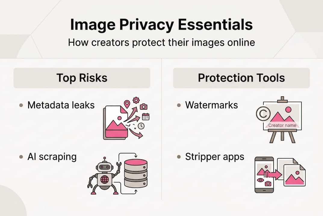 Every image you post carries invisible data that can expose your location, device, and identity to anyone who knows where to look. Many creators are unaware that posted images can leak metadata and be scraped for AI training, leading to serious reputation and safety risks. This isn't a fringe concern. It's a daily reality for influencers, social media managers, and agencies posting at scale. This guide breaks down what image privacy actually means for creators, which threats are most dangerous, and exactly how to build a workflow that protects your reach, your brand, and your identity without sacrificing authenticity.