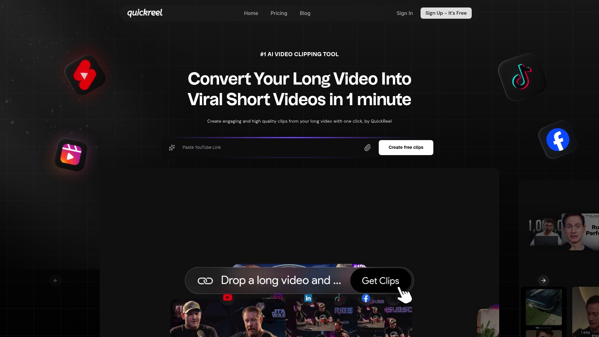 QuickReel is an AI powered video clipping tool that turns long recordings into platform ready short clips fast and with little manual effort. It targets creators and marketing teams who need volume and consistency from a simple interface.